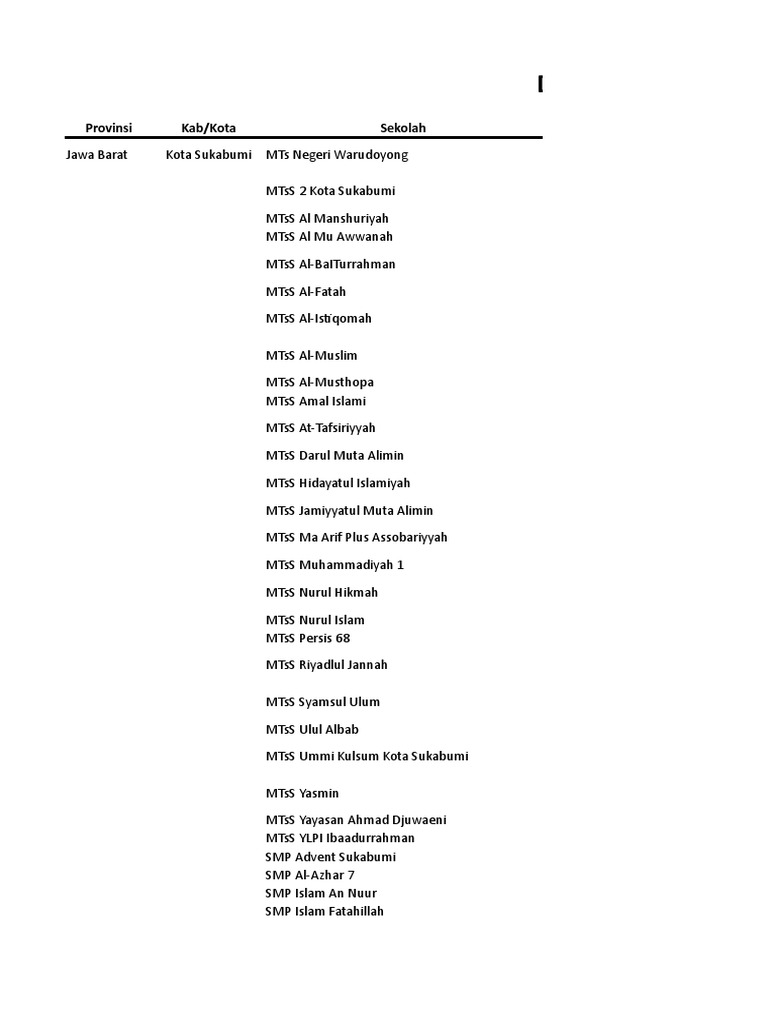 METROPOLITAN Yayasan Pendidikan Islam YPI Al Barokah Cikembar Kabupaten Sukabumi menargetkan masuk sebagai sekolah inklusif tahun ini. Yayasan Ulil Albab di Lampung Sukabumi dan Bogor yang diketuai Yazid Jawaz. The industry in which Madrasah Tsanawiyah Swasta MTsS Muslimin Al Barokah operates is Katolsk skoleThe country where Madrasah Tsanawiyah Swasta MTsS Muslimin Al Barokah is located is Indonesien while the companys headquarters is in Sukabumi.